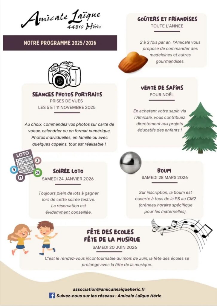 Partenaire fidèle des écoles publiques Jean Monnet et Marie Curie, l’Amicale Laïque Héric s’engage chaque jour aux côtés des équipes enseignantes pour soutenir les projets éducatifs et les initiatives en faveur des enfants.
